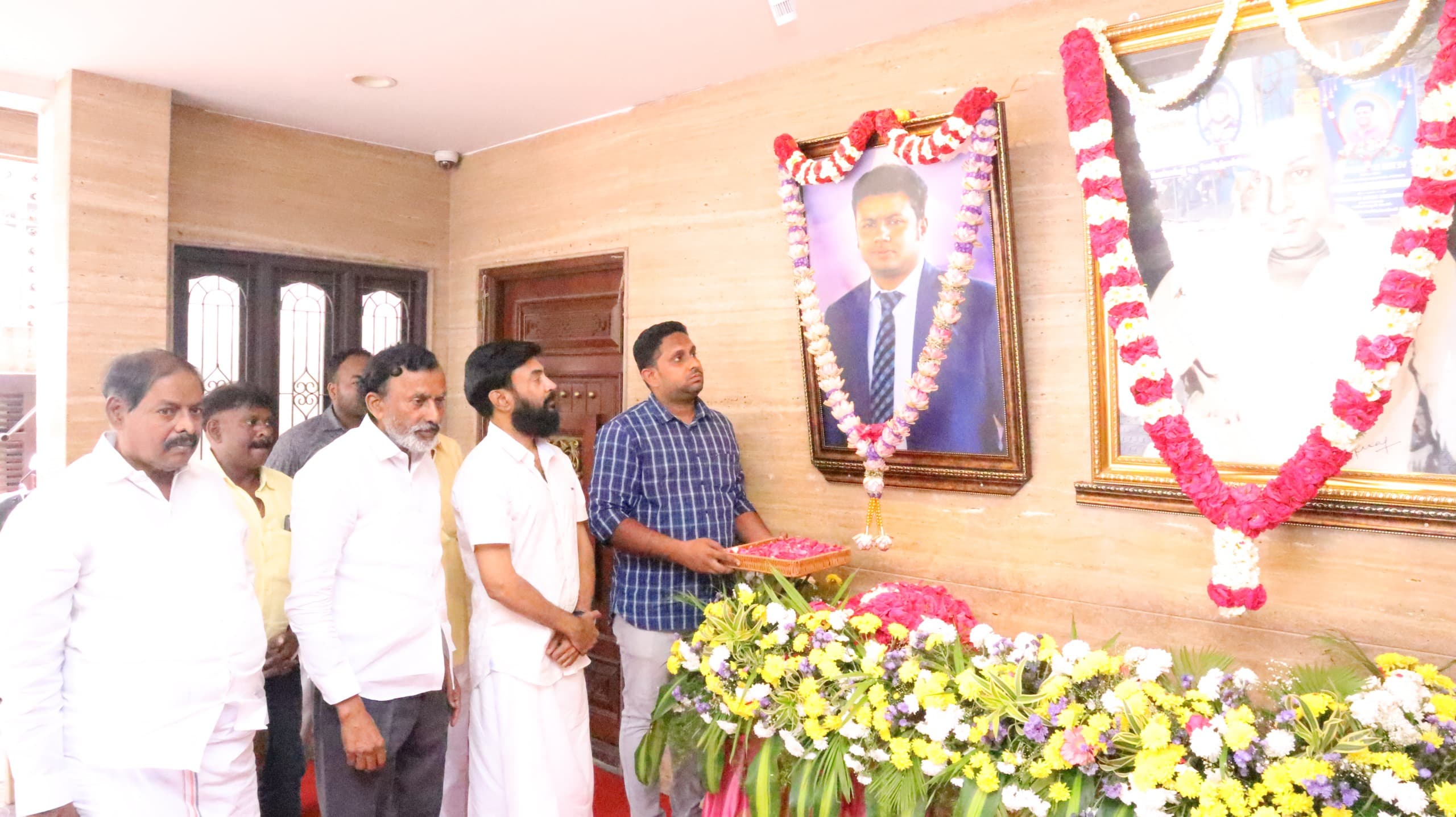 • திரு வெற்றி துரைசாமி அவர்களின் திரு உருவப்படத்திற்கு நடிகர் மோகன் மலர் அஞ்சலி