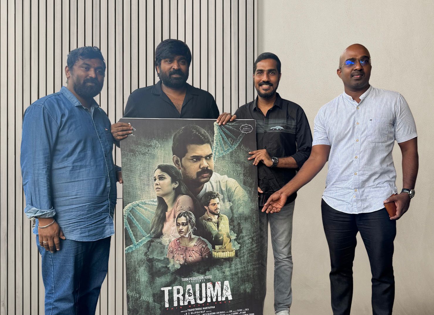 Actor Vijaysethupathy released the First look Poster of Medial Crime Thriller film ‘Trauma’ produced by S Uma Maheshwari under the banner of Turm Production House and directed by Thambithurai Mariappan, starring Vivek Prasanna, Poornima Ravi, Ananth Nag and Chandini Tamilarasan