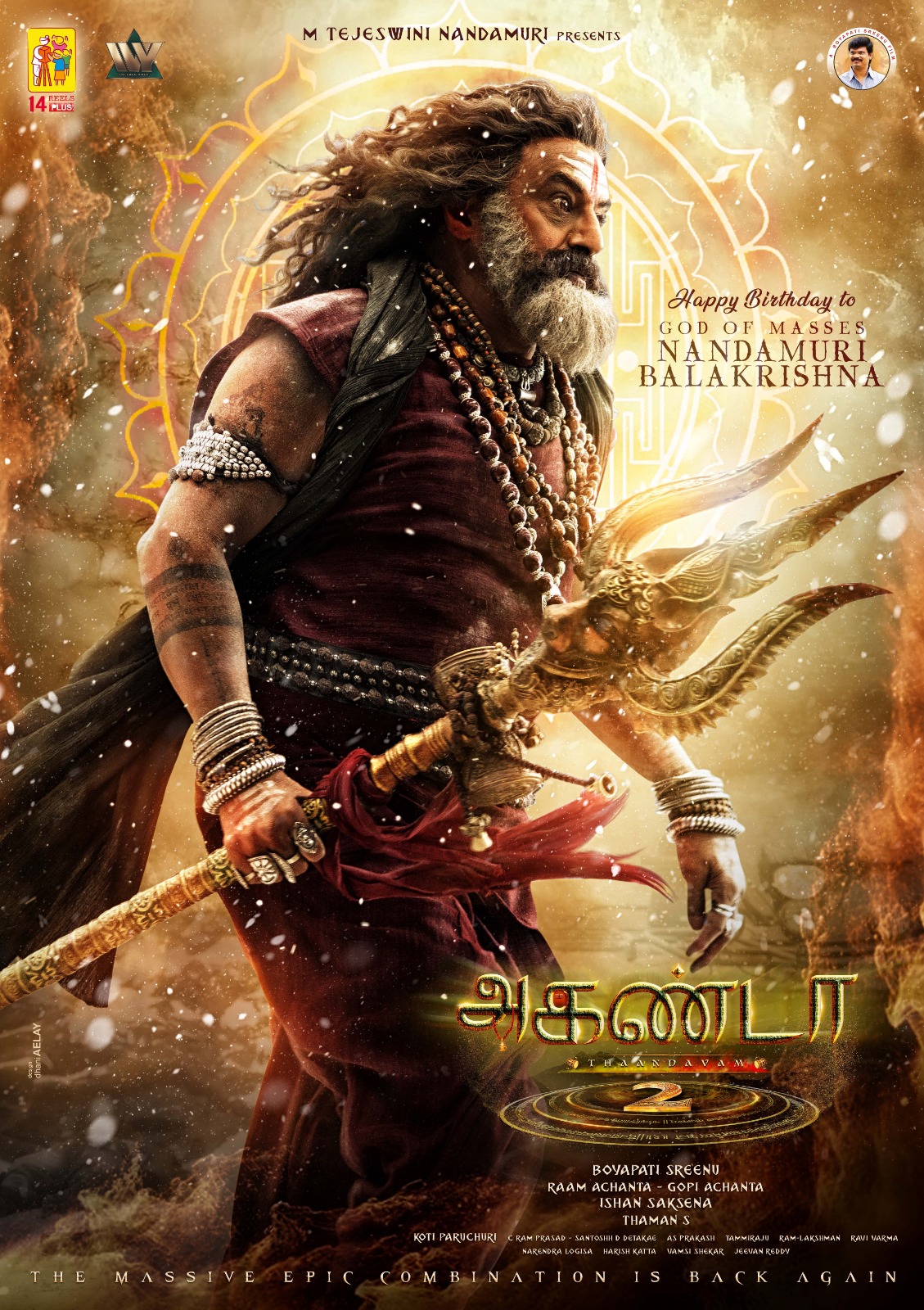 ‘காட் ஆப் மாஸஸ் ‘ நந்தமுரி பாலகிருஷ்ணாவின் நடிப்பில் தயாராகி, ரசிகர்களின் மிகப்பெரிய எதிர்பார்ப்பில் இருக்கும் திரைப்படம் ‘அகண்டா 2 : தாண்டவம்’. பாலகிருஷ்ணாவுடன் நான்காவது முறையாக இயக்குநர் போயபதி ஸ்ரீனு இணைந்திருக்கிறார். மாபெரும் வெற்றியைப் பெற்ற ‘அகண்டா’ திரைப்படத்தின் தொடர்ச்சியாக அகண்டா படத்தின் இரண்டாம் பாகம், அதிரடி மிக்க ஆக்சன் படைப்பாக இருக்கும் என படக் குழு உறுதி அளிக்கிறது. ஆக்சன் காட்சிகள்- ஆன்மீக பின்னணியுடன் கலந்திருக்கிறது. இந்த திரைப்படத்தை 14 ரீல்ஸ் பிளஸ் நிறுவனம் சார்பில் தயாரிப்பாளர்கள் ராம் அச்சந்தா மற்றும் கோபி அச்சந்தா ஆகியோர் இணைந்து தயாரித்திருக்கிறார்கள். இந்த திரைப்படத்தை எம். தேஜஸ்வினி நந்தமுரி வழங்குகிறார்.
