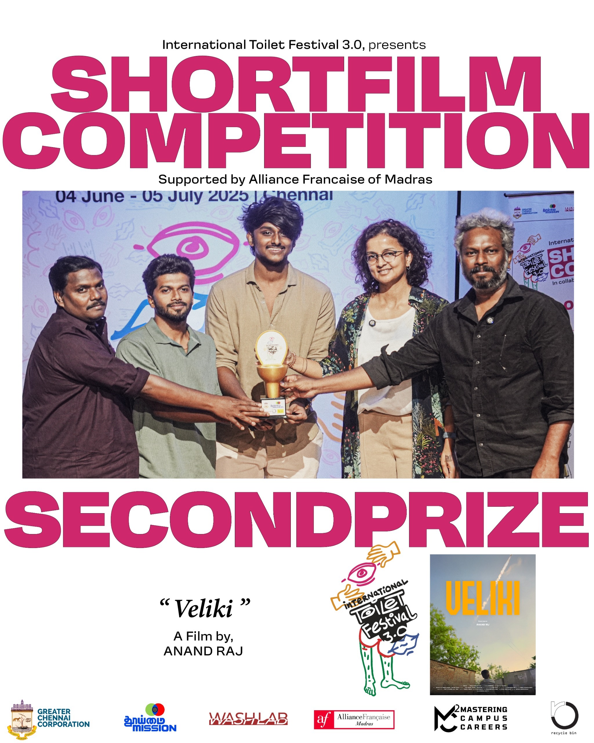 பெருநகர சென்னை மாநகராட்சியுடன் வாஷ் லேப், தூய்மை மிஷன், சியர் மற்றும் ரீசைக்கிள் பின் அமைப்புகள் இணைந்து நடத்தும் சர்வதேச கழிப்பறை திருவிழா 3.0 வில் குறும்படப் போட்டியின் வெற்றியாளர் அறிவிப்பு