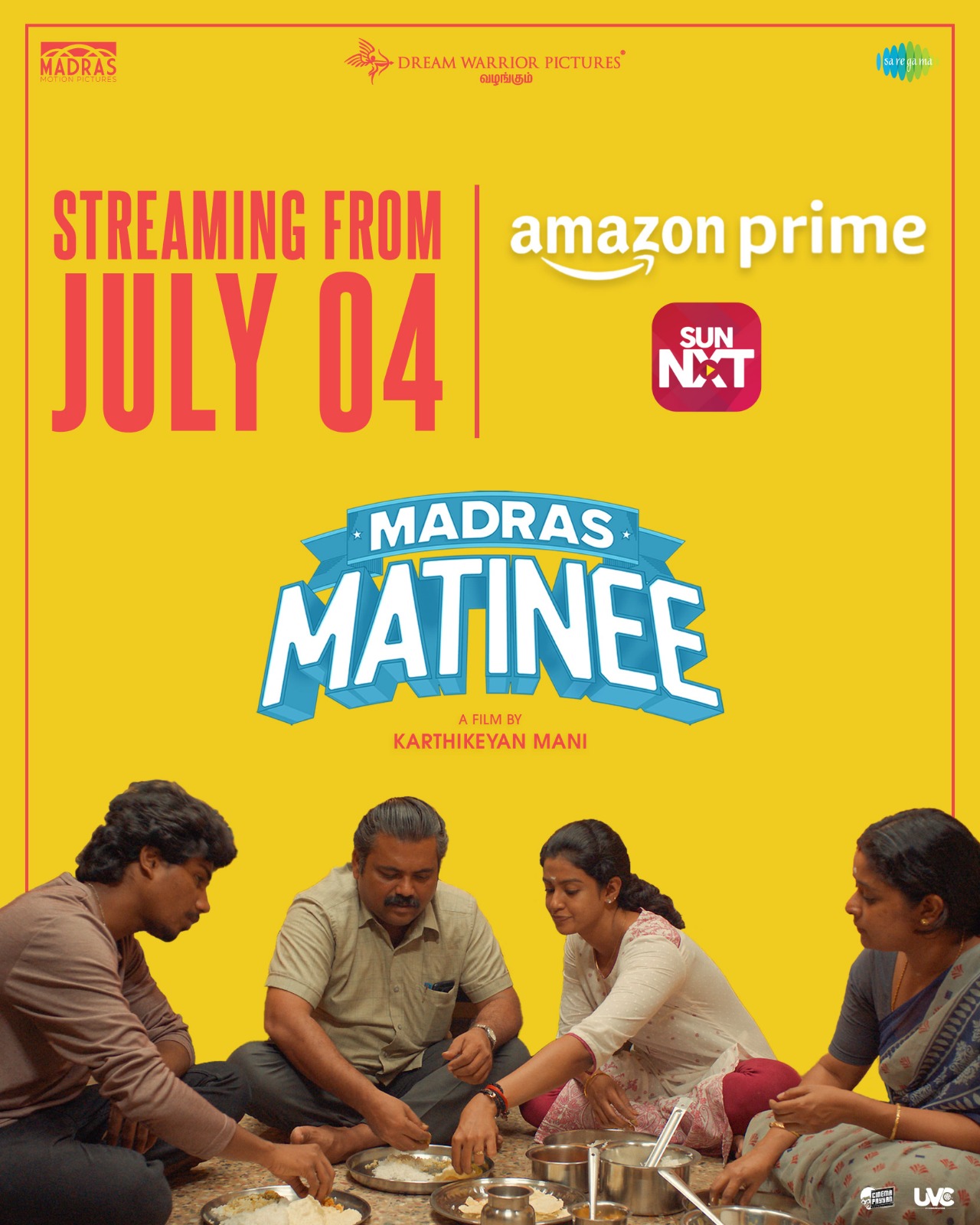 திரையரங்குகளில் வெளியாகி ரசிகர்களின் பாராட்டைப் பெற்ற திரைப்படங்களுக்கு டிஜிட்டல் தளங்களிலும் மிகப்பெரும் வரவேற்பு கிடைத்து வருகிறது. அந்த வகையில் மெட்ராஸ் மேட்னி திரைப்படம் ஜூலை நான்காம் தேதியன்று அமேசான் பிரைம் (இந்தியா), சன் நெக்ஸ்ட்,சிம்பிள் சவுத் ( வேர்ல்ட் வைட்) மற்றும் டென்ட் கொட்டா ஆகிய முன்னணி டிஜிட்டல் தளங்களில் வெளியாகிறது.