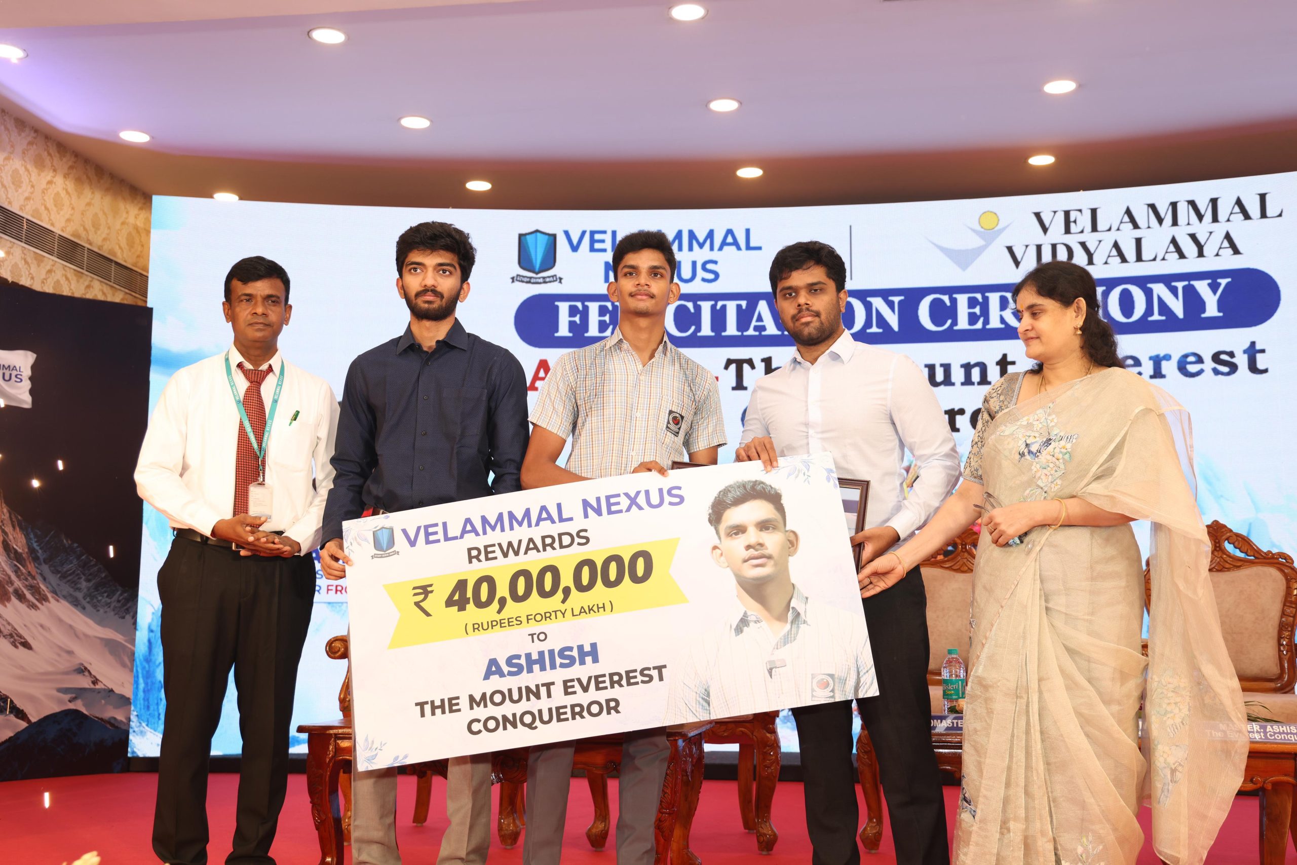 ஏவரெஸ்ட் சிகரம் எட்டிய வேலம்மாளியன் ஆஷிஷ் வேலம்மாள் நெக்ஸஸ் சிறப்பாக கௌரவித்து – 40 லட்சம் ரொக்க பரிசு வழங்கியது