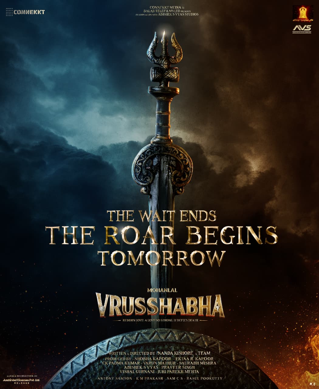 மோகன்லால் தனது சமூக வலைதளத்தில் பகிர்ந்துகொண்டதாவது..,“காத்திருப்பு முடிந்தது. கர்ஜனை நாளை தொடங்குகிறது! விருஷபா உலகுக்குள் அடியெடுத்து வையுங்கள்.”