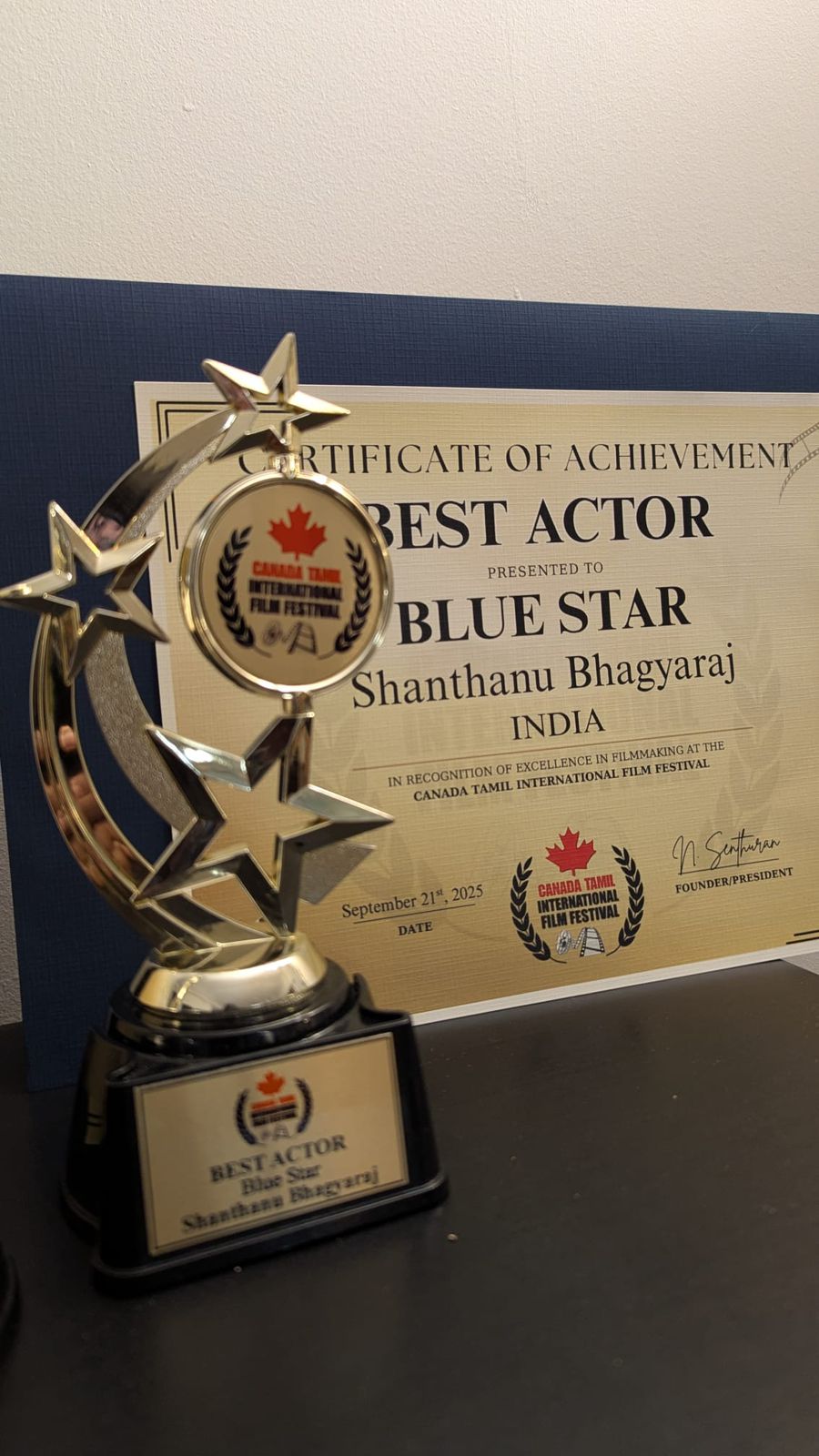 கனடா இண்டர்நேஷனல் தமிழ் பிலிம் ஃபெஸ்டிவலில் சிறந்த படமாக புளூ ஸ்டார் திரைப்படம் விருது பெற்றுள்ளது. மேலும், சிறந்த நடிகராக இப்படத்தில் நடித்த சாந்தனு பாக்யராஜ் விருதை பெற்றுள்ளார்.