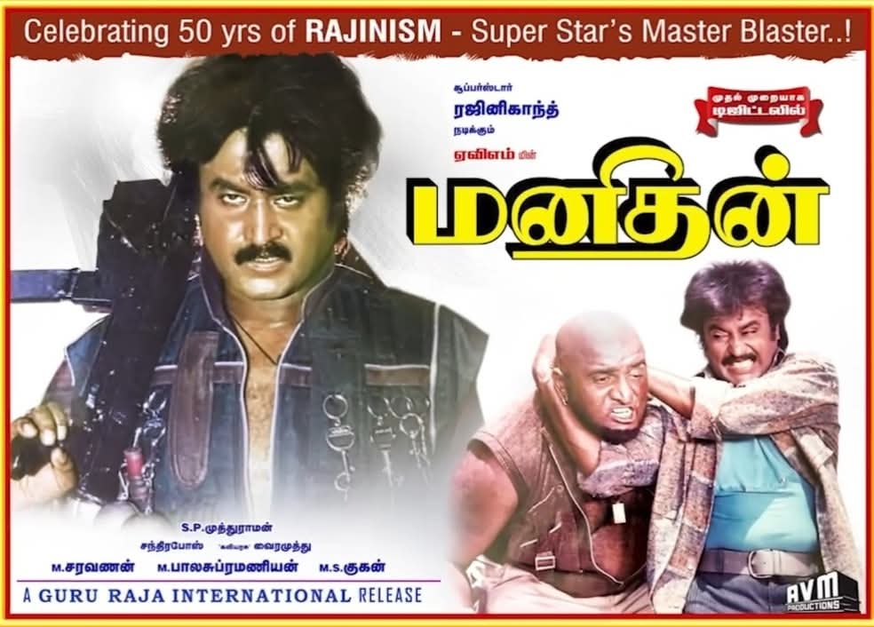 சூப்பர் ஸ்டார் ரஜினிகாந்த் நடித்து மாபெரும் வெற்றி பெற்று வசூல் சாதனை படைத்த படம் ஏ.வி. எம். நிறுவனம் தயாரித்த மனிதன் படம்.