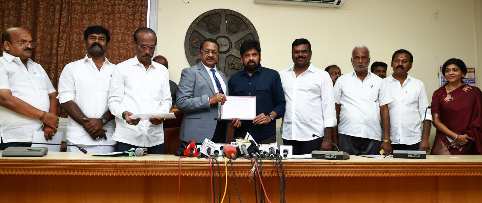 நேற்று நடந்த தமிழ் திரைப்பட தயாரிப்பாளர் சங்கத்தின் புதிய நிர்வாகிகளுக்கான தேர்தலை ஓய்வு பெற்ற நீதிபதி ராஜேஸ்வரன் தலைமை தாங்கி நடத்தி வைத்தார். இன்று இந்த தேர்தலில் வெற்றி பெற்ற நிர்வாகிளை அதிகாரபூர்வமாக அறிவித்து சான்றிதழ் வழங்கினார்.