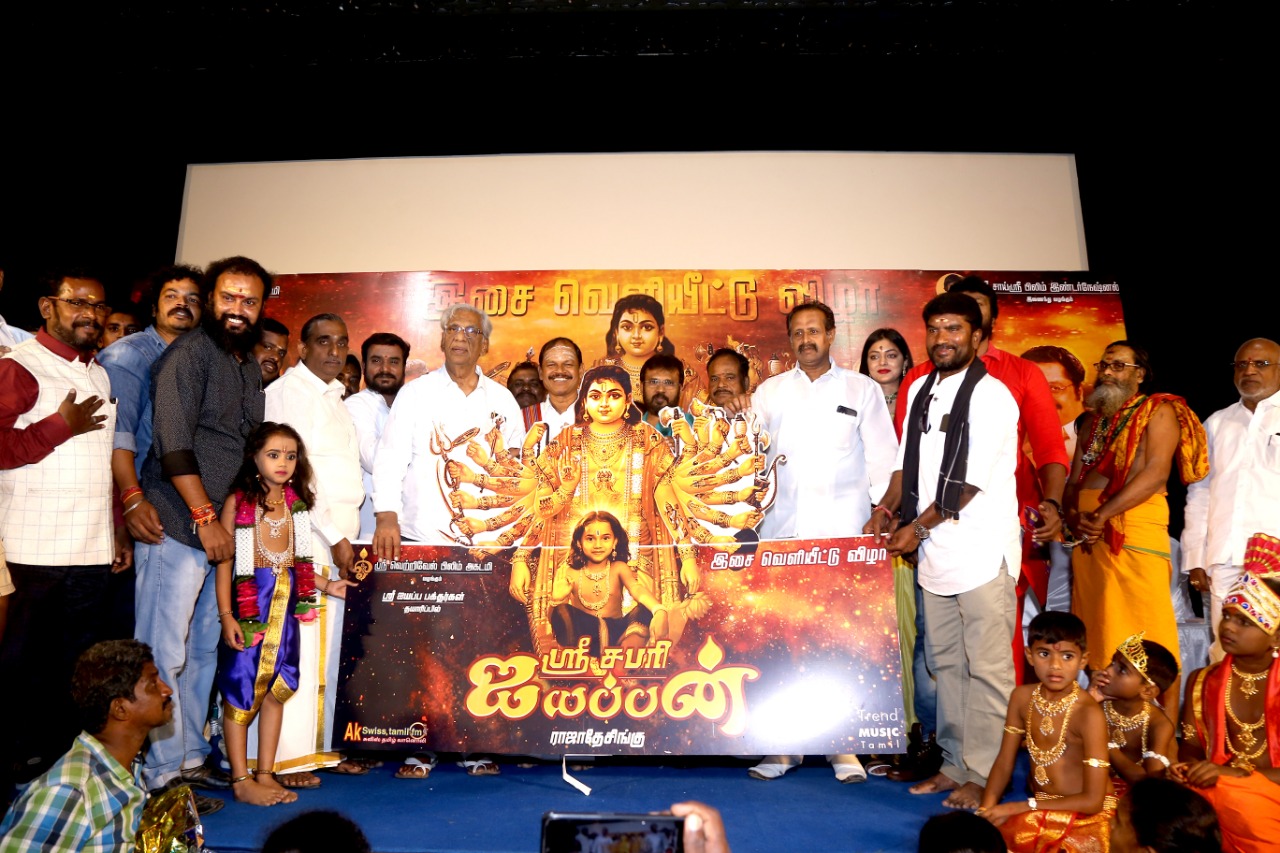 செண்டை மேளம் முழங்க, ஐயப்பன் பூஜை நடத்தி, 18′ படியில் ஐயப்பனை அமர வைத்து, “ஸ்ரீ சபரி ஐயப்பன்” திரைப்படத்தின் இசை வெளியீட்டு விழா நடைப்பெற்றது!