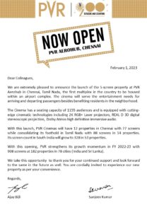 PVRCinemas in Airport CinemaNewsமுன்னோட்டம் By Cine Fashion On Feb 1, 2023 Share Newly opened PVR Cinemas in Airport. Thanks, Featured Share