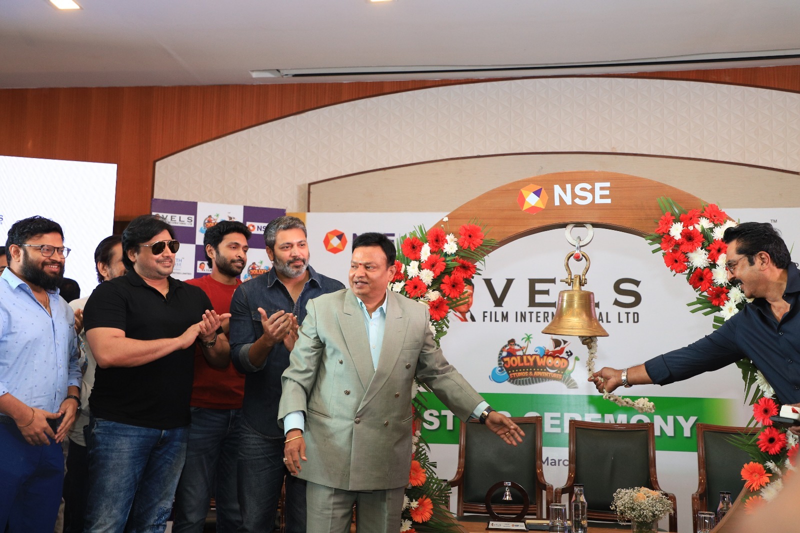 மேலும் இவ்விழாவில் தேசிய பங்கு சந்தையில் முதன்முதலாக பட்டியலிடப்பட்டிருக்கும் வேல்ஸ் ஃபிலிம் இன்டர்நேஷனல் லிமிடெட் எனும் நிறுவனத்தின் முயற்சிகளை பாராட்ட தமிழ் திரையுலகத்தின் முன்னணி நட்சத்திர நடிகர்களான சரத்குமார், ஜெயம் ரவி, விக்ரம் பிரபு, ஜீவா, Hiphop ஆதி, ஆரி அர்ஜுனன், ஆரவ், பிரசாந்த் உள்ளிட்ட நடிகர்களும், இயக்குநரும், நடிகருமான சுந்தர் சி, பேரரசு, ஆர்வி உதயகுமார், ஆர். கே. செல்வமணி, கௌரவ் நாராயணன், நடிகை சங்கீதா கிரிஷ், இயக்குநர்கள் கோகுல், ஏ. எல். விஜய், தமிழ்நாடு விநியோகஸ்தர்கள் சங்க நிர்வாகிகளில் ஒருவரான திருப்பூர் சுப்பிரமணியம் என திரையுலகின் முன்னணி பிரபலங்கள் வருகை தந்தனர். நிகழ்விற்கு வருகை தந்திருந்த அனைவரும் வேல்ஸ் ஃபிலிம் இன்டர்நேஷனல் லிமிடெட் நிறுவனத்தின் முன்னுதாரண முயற்சியை அங்கு அமைக்கப்பட்டிருந்த மணி ஓசையை எழுப்பி தங்களின் வாழ்த்துகளைத் தெரிவித்தனர்.