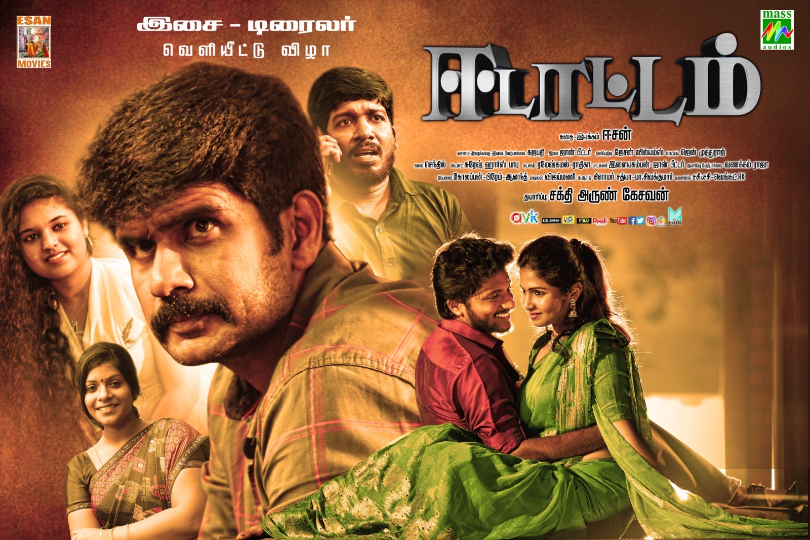 ‘ஈடாட்டம்’ (EDATTAM). படத்தின் இசை வெளியீட்டு விழா பிரசாத் லேபிள் நடை பெற்றது. அதில் நிறைய பிரபலமான இயந்திரங்கள் கலந்து கொண்டனர். தயாரிப்பாளர் ராஜன் இயக்குனர் பேரரசு. இயக்குனர் எழில். நடிகர் காதல் சுகுமார். நடிகை அனு கிருஷ்ணா. தயாரிப்பாளர் இயக்குனர் ஈசன் என எல்லோரும் படம் மிகப்பெரிய வெற்றி படமாக அமையும் என வாழ்த்தி பேசினார் கள் …. இப்படத்தை பற்றி