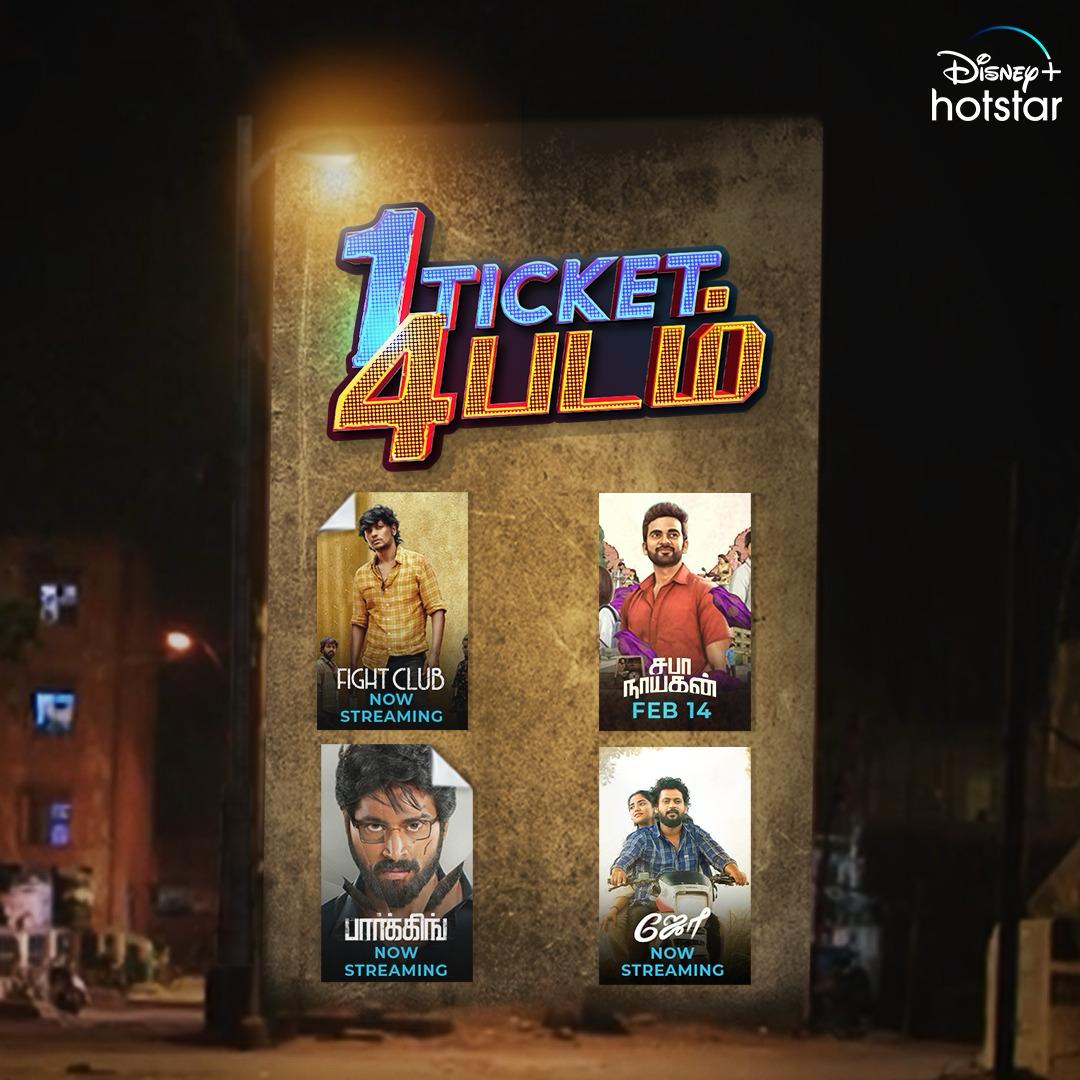 இந்தியாவின் முன்னணி ஸ்ட்ரீமிங் தளமான டிஸ்னி+ ஹாட்ஸ்டார், ரசிகர்களுக்காகப் பிரத்தியேகமாக 1 டிக்கெட் 4 படம் எனும், புதிய அறிவிப்பு ஒன்றை வெளியிட்டுள்ளது. இதன் மூலம் ரசிகர்கள் தற்போது நான்கு புதிய சூப்பர்ஹிட் திரைப்படங்களை பார்த்து ரசிக்க முடியும்.
